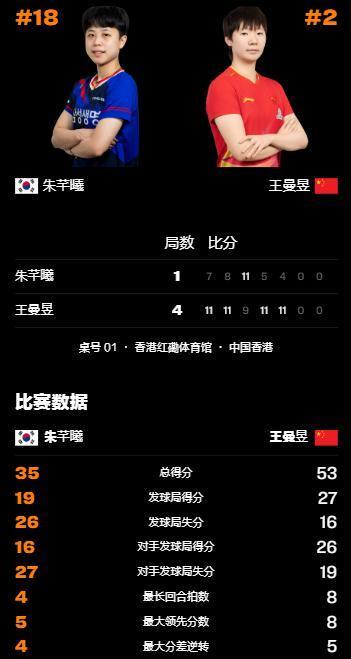 23岁的朱芊曦,在遴荐为韩国乒乓球队效劳后,凭借出众的实力和褂讪的证据,赶快坐稳了女单主力的位置,也把我方的寰宇名次普及到了第18位,不外在玄虚才调方面,朱芊曦和现役顶尖女单的王曼昱,如故有着肉眼可见的差距,二东谈主在过往的3次径直对话中,王曼昱沿路取得了收效,其中上一次交手是在客岁的法兰克福冠军赛上,那时王曼昱以3-1获胜晋级。